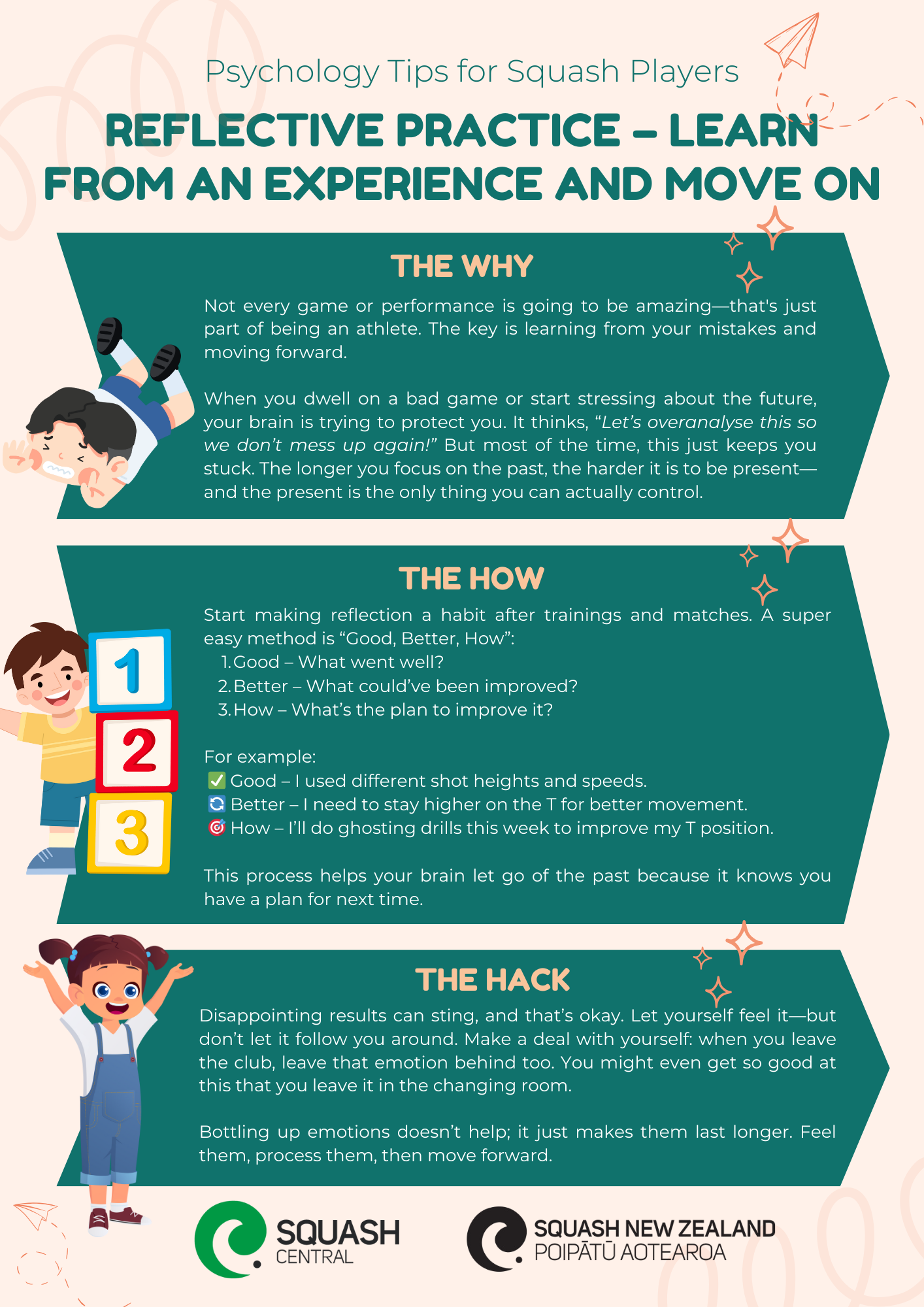 Below you’ll find a series of bite-sized resources designed specifically for junior players. Each one focuses on a key area of squash psychology—what it is, why it matters, and how to build it. You’ll also get simple hacks you can start using straight away, both on and off the court.